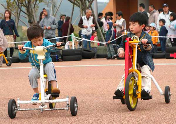 手でこぐ自転車や、ジャンプしないと進まない自転車など、いろんな自転車が大集合します。