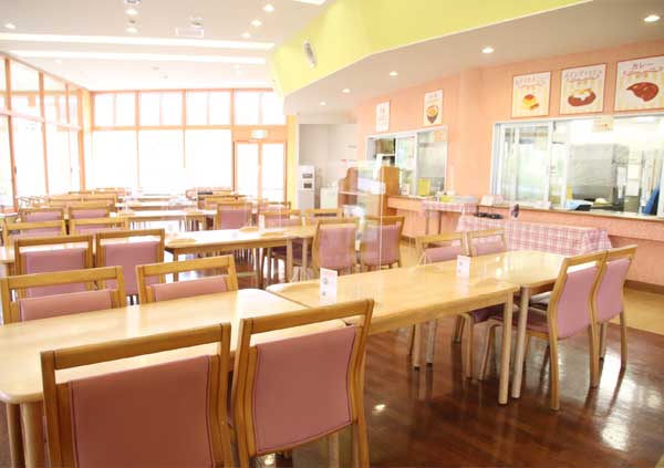 明るく広い街のレストランでお食事ができます。