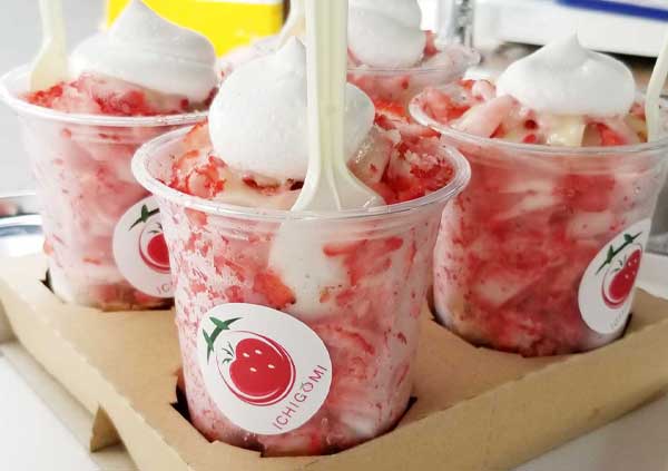 45年の歴史を持つ静岡のイチゴ農園。完熟紅ほっぺを冷凍、フワフワに削りホイップクリーム、練乳、バニラで可愛らしくトッピングしました。